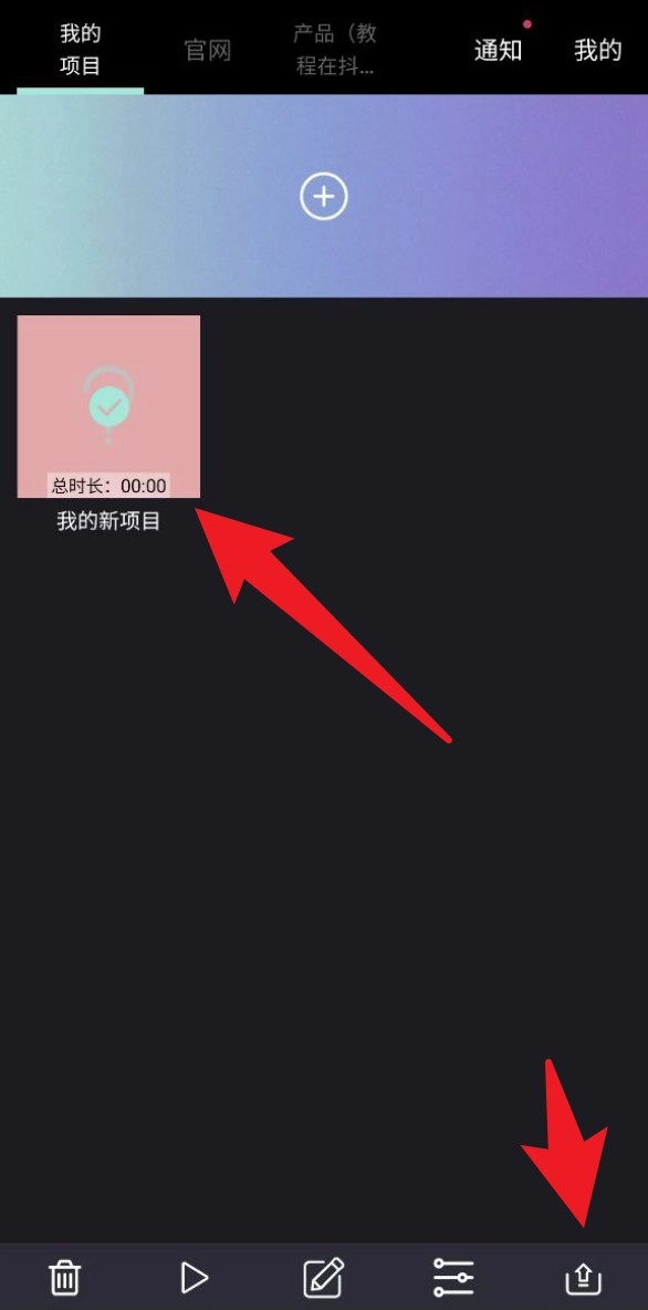 点击首页中央的+图标,就能创建新的项目,供后续拍摄与编辑使用。