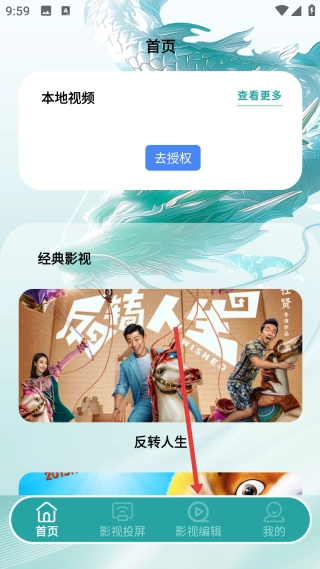在首页,点击底部的【影视编辑】选项,即可进入视频编辑功能的选择页面。