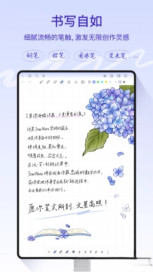 支持市面上多数主流手写笔的压感功能,书写时的触感与真实纸张更为贴近。