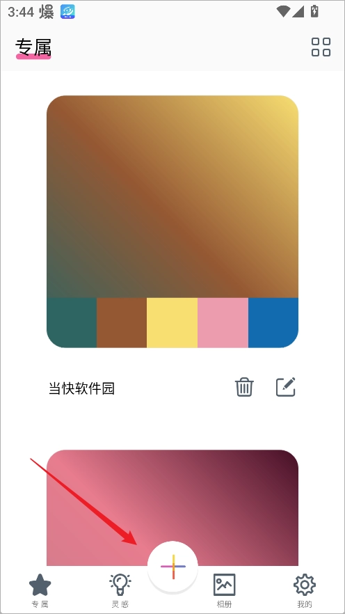 点击“+”按钮后,在弹出的选项列表里选择“色卡”选项,即可进入专门的配色编辑界面。