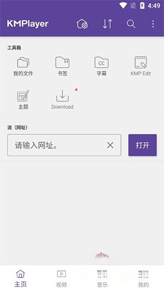 并安装完成后,打开KMPlayer安卓播放器。