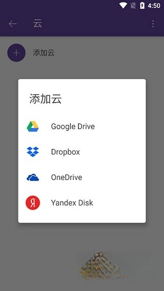 点击“云”选项,选择“添加云”,找到对应的云盘,登录账号后,云盘内容将显示在主页。