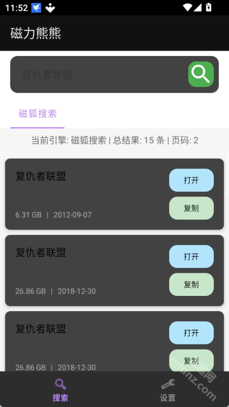 磁力熊熊是一款整合了多个磁力网站资源的聚合搜索工具,用户能够直接输入关键词进行检索,搜索到的结果既可以直接打开也能复制链接。在打开链接时,它支持迅雷等多种下载引擎,并且用户可以自主对搜索引擎进行管理。此外,该工具的最大并发搜索线程数量也支持自定义修改,非常适合平时热衷于观看电影的用户使用。如果用户不想在线观看影片,就可以借助磁力熊熊搜索器找到资源并进行离线观看。