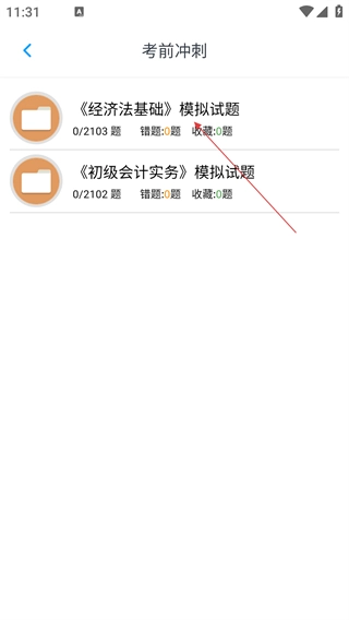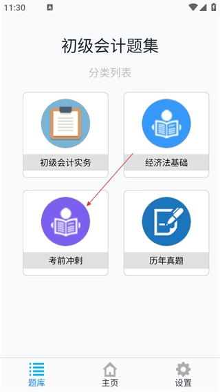在初级会计题集的分类列表里,点击【考前冲刺】这个选项,就能进入考前冲刺页面。