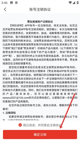 请仔细阅读协议内容,之后勾选【我已阅读,并同意此注销协议】这一选项,再点击【确定注销】按钮,即可完成账号注销操作。