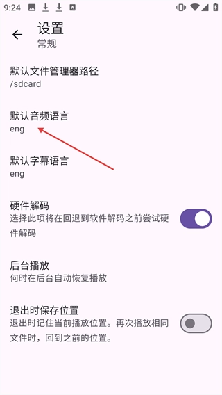 在mpv的【设置-常规】页面中,你可以点击【默认音频语言】选项来完成相关设置。