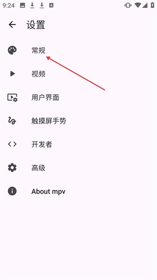 进入mpv的【设置】界面后,点击【常规】选项即可进入常规设置页面。
