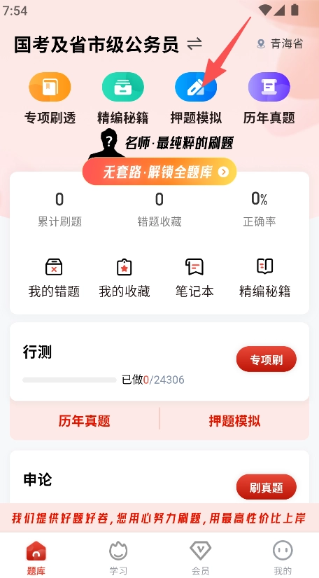 进入软件,点击押题模拟,进入押题模块。