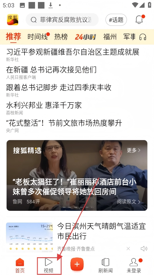 在首页底部点击【视频】按钮,即可进入视频页面,浏览各类趣味十足的视频内容。