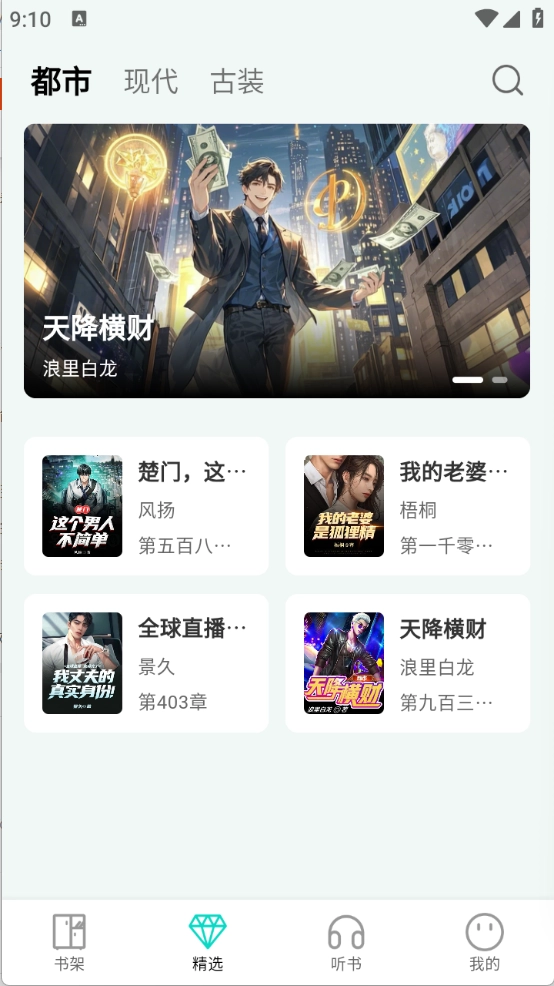 进入首页后,“精选”页面汇聚了丰富的小说资源。
