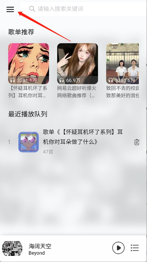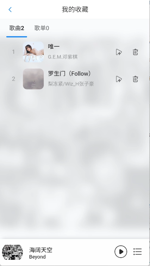 支持通过关键词搜索歌曲、歌手或专辑,帮你快速找到想听的内容。
