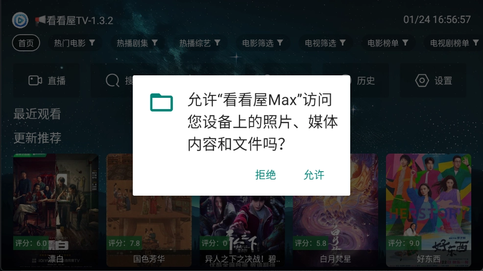 看看屋Max,一款免费的手机电视盒子应用,汇聚了海量影视资源,涵盖热门电视剧、电影与综艺节目,所有内容均为当下高热度作品。高清流畅的播放画质,为用户呈现沉浸式的视觉享受;用户可对喜爱的影片进行收藏,平台还会依据个人偏好智能推送同类型内容。此外,资源更新及时,能充分满足大家的追剧需求。