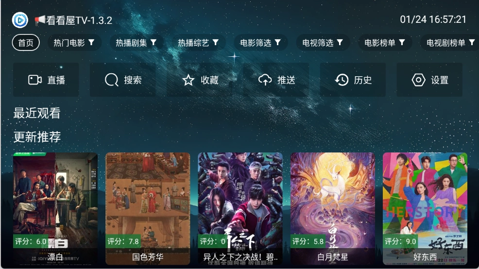 进入首页后,顶部栏里有非常丰富的影视资源,涵盖热门电影、电视剧以及综艺节目等。