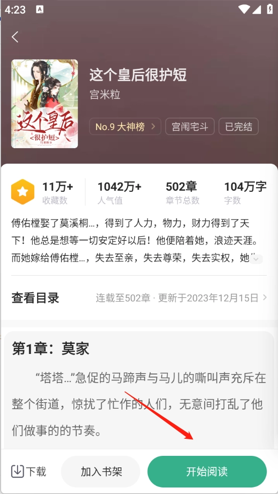 直接点开你想看的小说资源进入详情页,然后点击“开始阅读”按钮。