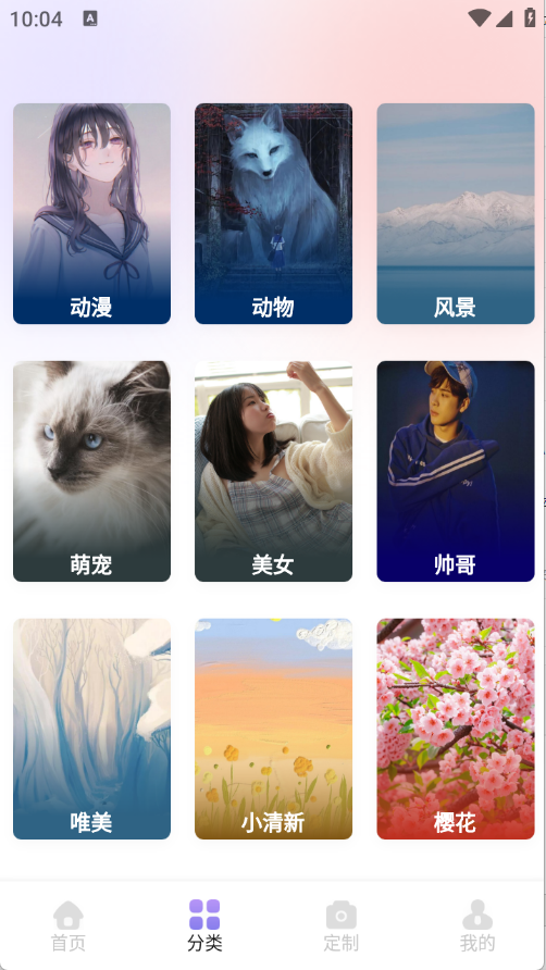 分类栏目涵盖多种类型,像萌宠类、动漫类和唯美类都在其中。