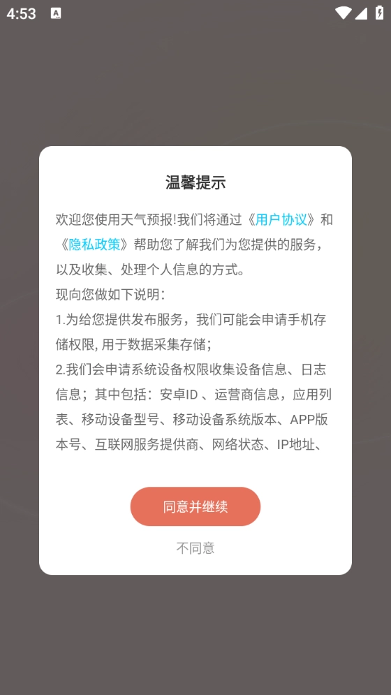 在3G游戏网最新版的天气预报之后,需要同意相关政策与协议。