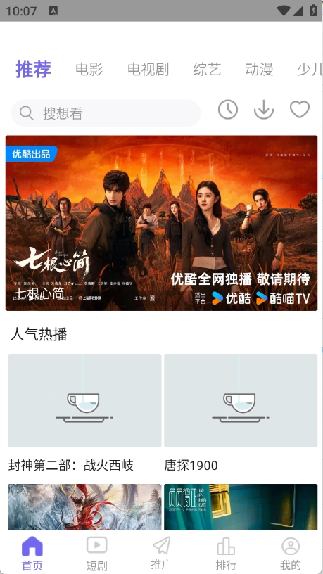 进入首页后,顶部栏汇集了众多影视剧集,涵盖电影、电视剧以及综艺等类型。