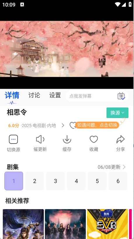 找到并打开想看的影视作品后,既可以选择具体的集数观看,也能够切换不同的播放源来播放。