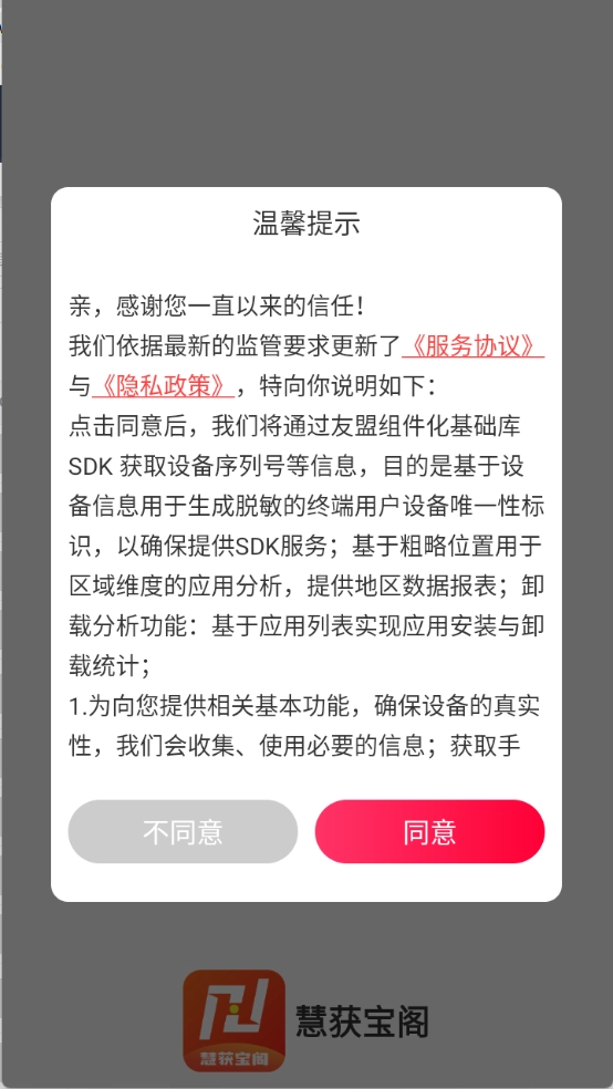 首先在3G游戏网的慧获宝阁板块,查看并同意平台的隐私政策以及用户协议。