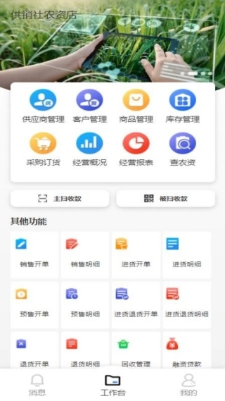 具备全方位的管理功能,可满足农资店铺多维度的管理需求,用户无需切换其他应用软件,即可一站式完成各项工作。
