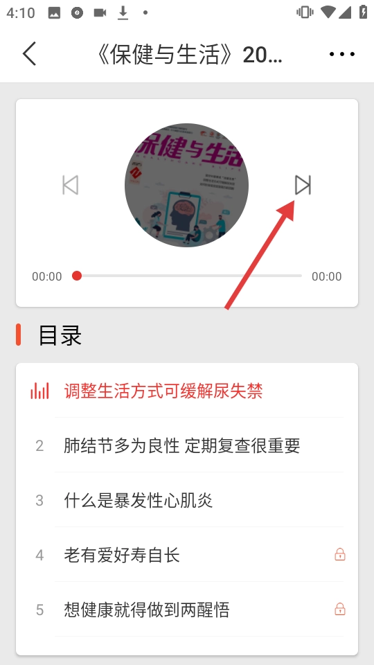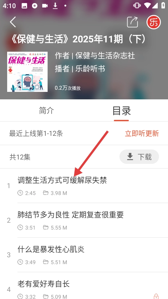 在《保健与生活》2026年11期(下)的目录里,挑选“调整生活方式可缓解尿失禁”这个音频集。