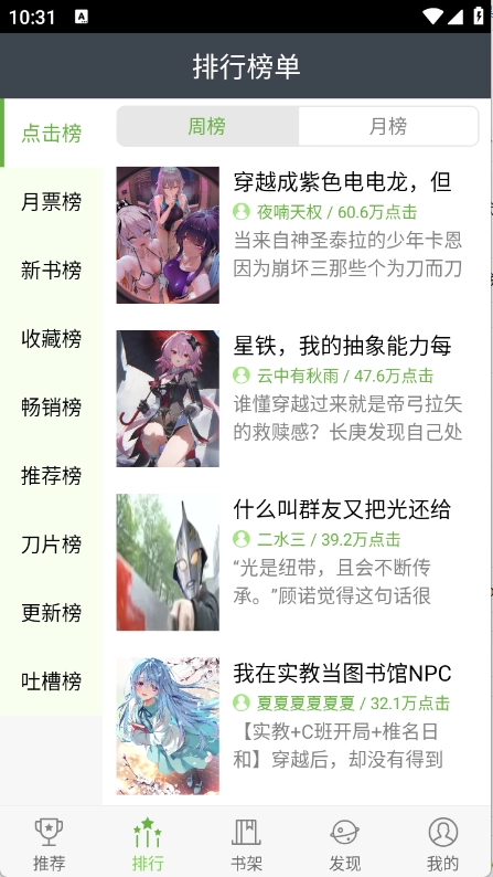 构建人气榜、月票榜、新书榜等多维度榜单体系,通过不同数据维度来筛选出优质作品。