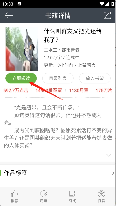 找到你想看的小说并点击进入详情页面,然后点击“立即阅读”按钮。