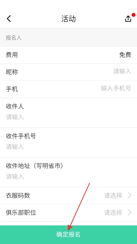 在报名信息填写页面,依次填写昵称、手机号码等相关信息后,点击【确定报名】按钮,即可完成活动报名流程。
