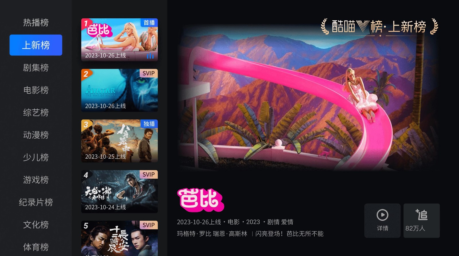 专业的榜单呈现:以多维度的榜单结构为依托,通过专业的推荐数据支撑,结合极具视觉冲击力的呈现方式,精准向用户推荐当下热门的影视剧作品。