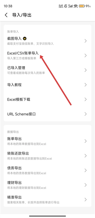 进入导入导出页面后,选择【Excel或CSV账单导入】选项,就能进入账单导入的具体操作流程啦。