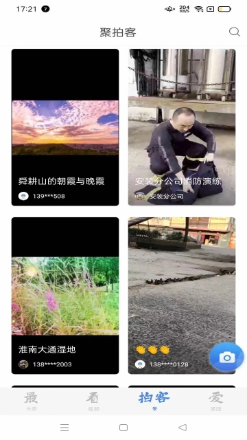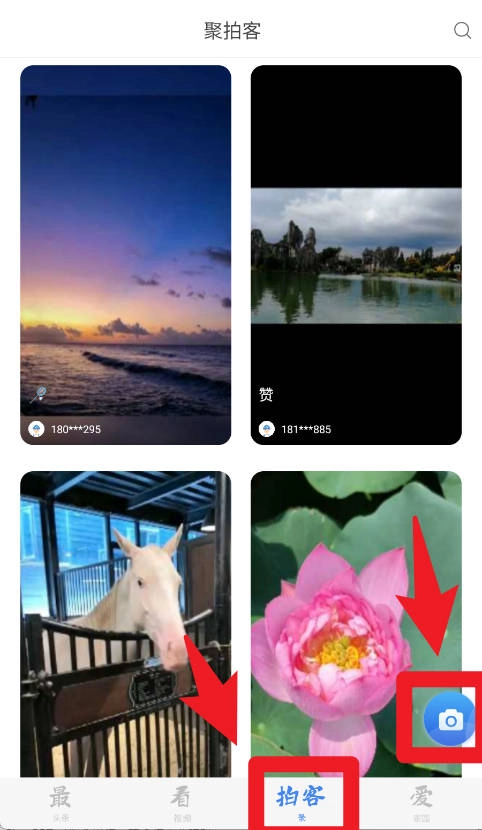 拍客板块支持用户上传个人摄影作品,点击拍摄按钮就能完成发布,其他用户可以进行浏览和点赞,以此实现互动交流与作品分享。