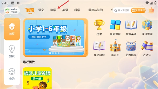 进入首页,选择上方的数学学科。