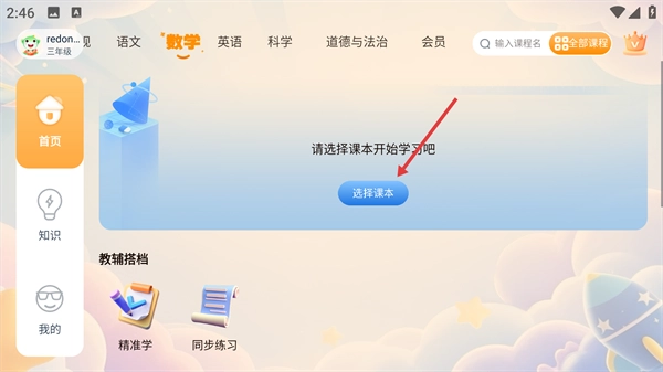 在学科页面,点击“选择课本”按钮,即可进入课本选择界面。