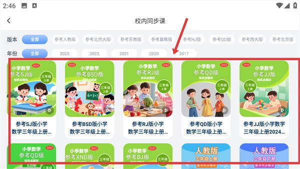 学科匹配的操作流程如下:先选定与自身年级相适配的教材版本,随后即可获取到与校内教学进度同步的名师授课视频,以及丰富的拓展学习资料库。