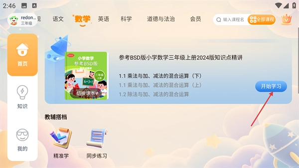 选定课本后,点击“开始学习”按钮,进行学习。