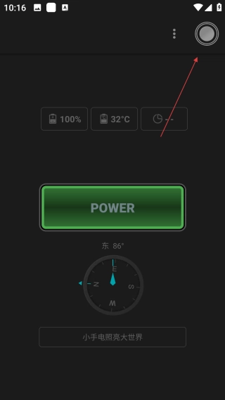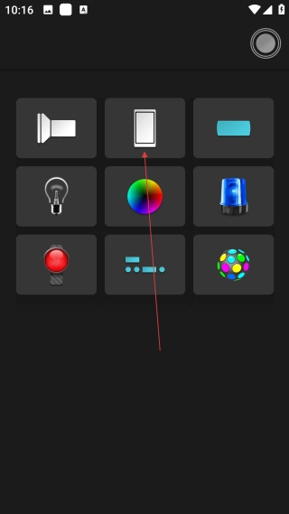 在手电筒的主界面上,点击右上角的功能按钮,就能打开工具选择的界面。