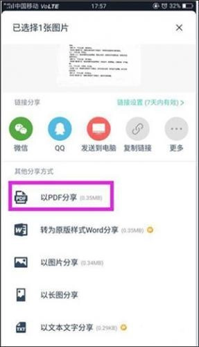 5、在弹出的发送方式中选择一种合适的方式,例如vx,然后到vx上接收文件时就会发现已转换为PDF格式。