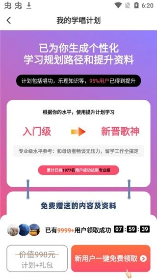 【音准练习】具备纠错功能,能协助修正演唱时出错的音符,并且提供热门歌曲的练习资源,让使用者可以紧跟流行潮流。