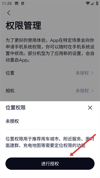 当位置权限的弹窗出现时,点击“进行授权”按钮,就能跳转到手机的系统层面,完成权限的授予操作。