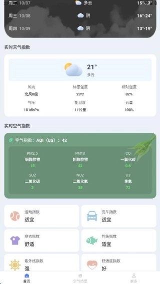 也配备了生活指数功能,一键即可查看,内容十分详尽,能为你在穿衣等方面提供实用的信息参考。