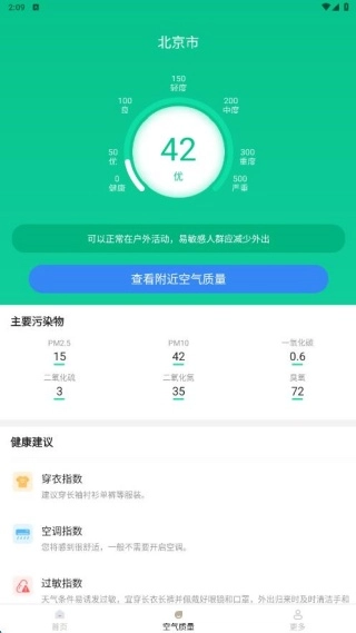 在空气质量页面,你可以查看当地空气中各类污染物的精准监测数据,浏览起来十分轻松。