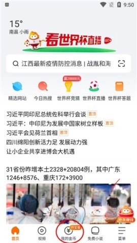 打开悟空浏览器首页,点击底部的“我的金币”。