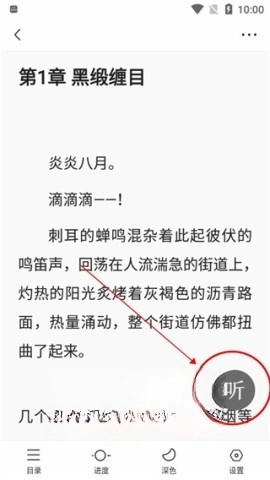 点击右下角的“听”按钮,就能开启听书模式,沉浸在小说的精彩世界里。