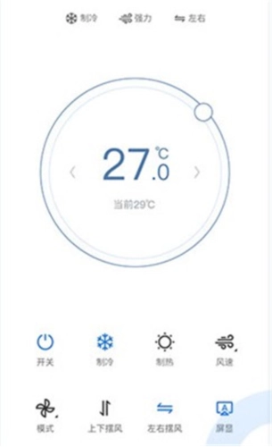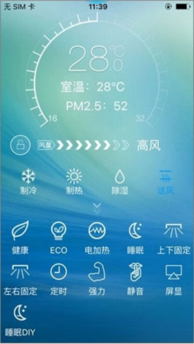 之后就可以对空调进行调节温度、切换模式、控制开关、开启eco模式、设置定时、调整上下左右摆风、启动睡眠模式、开启健康屏显、使用电加热等常规操作。