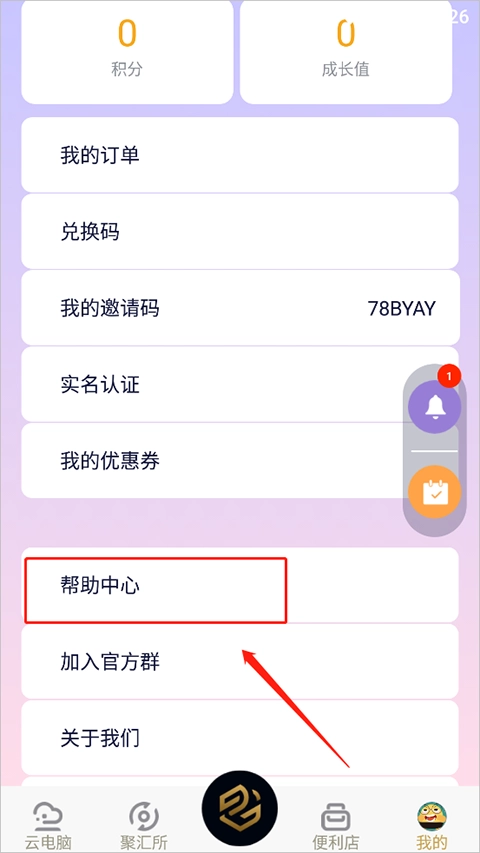 在“我的”菜单中选择“帮助中心”。