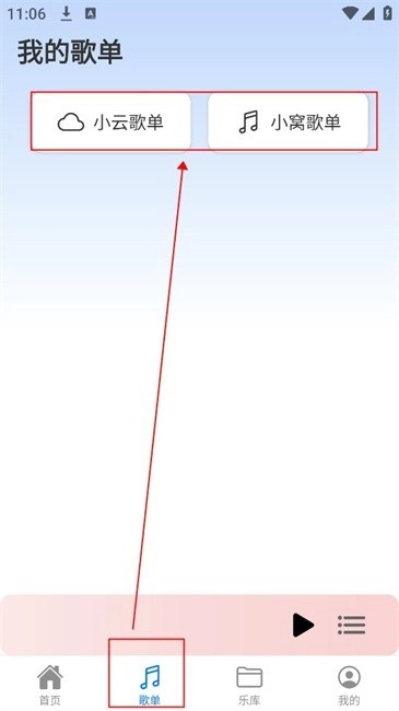 接下来打开青听音乐,点击【歌单】选项,选择“小云歌单”或者“小窝歌单”。
