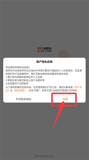 应用启动后,请先阅读用户隐私政策,点击同意按钮即可继续后续操作流程。