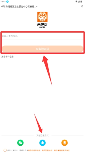 在登录页面输入手机号以获取验证码,也可以选择其他登录方式。
