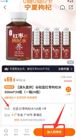 查看商品详情页面的价格及规格信息,点击加入购物车按钮完成添加操作。