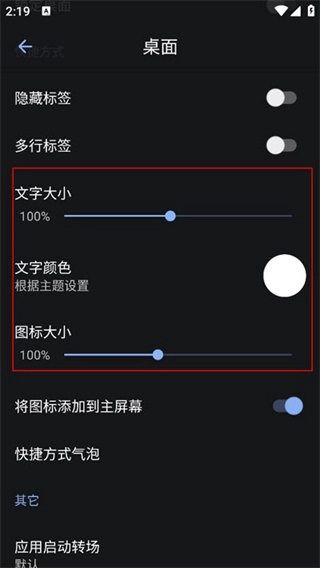 用户还可以设置文字大小、文字颜色、图标大小等。